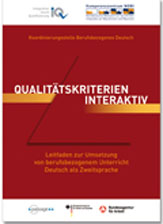 Die Publikation basiert auf einer Reihe von bundesweit durchgeführten Workshops zum Thema „Qualitätskriterien interaktiv“, in denen Rahmenbedingungen und Maßnahmen zur berufsbezogenen Sprachbildung im Mittelpunkt der Diskussionen standen.